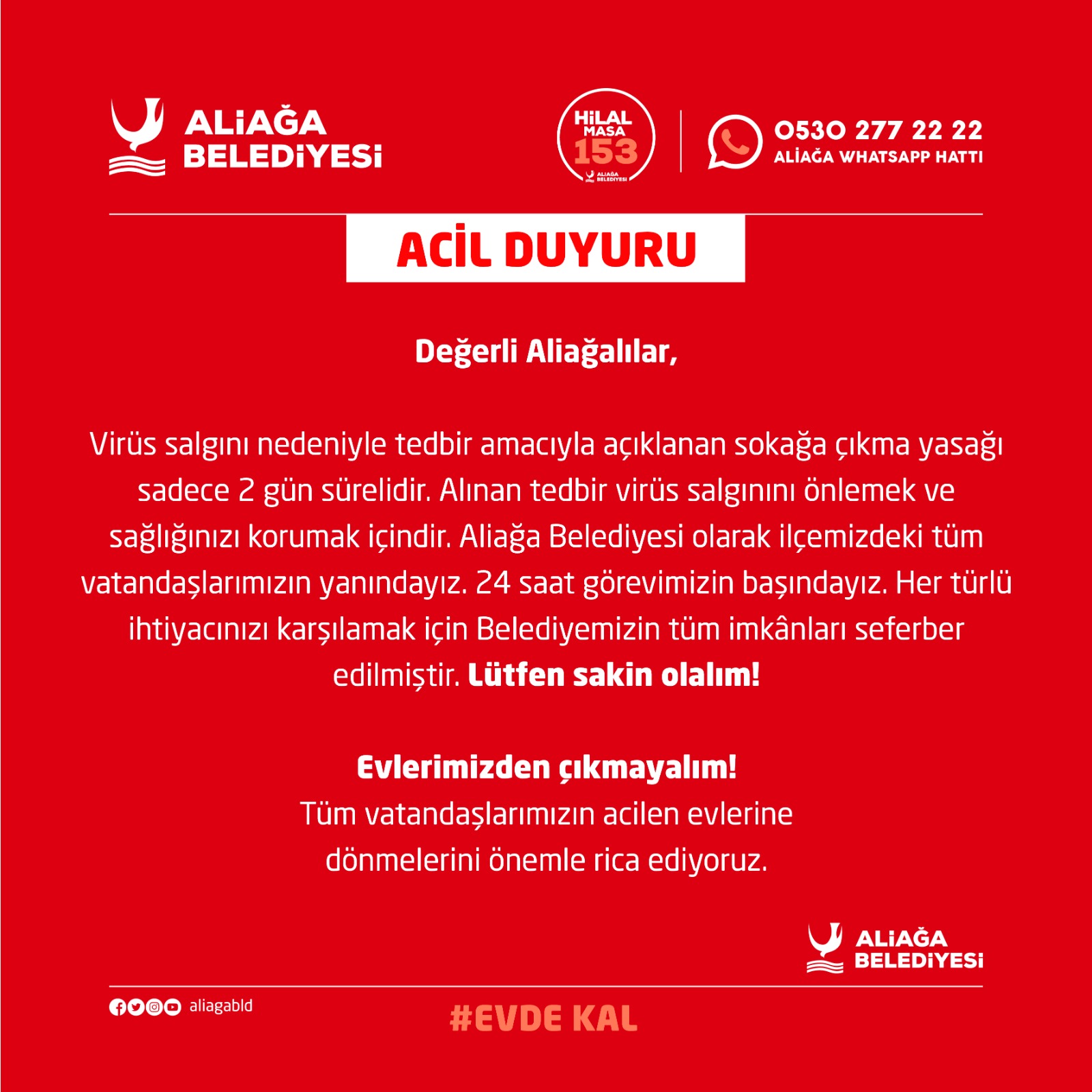 Aliaga Belediyesi On Twitter Icisleri Bakanligi Koronavirus Onlemleri Kapsaminda Bu Gece Yarisindan Itibaren 12 Nisan Gunu Saat 24 00 E Kadar 30 Buyuksehir Ve Zonguldak Ta Il Sinirlari Icerisinde Sokaga Cikma Yasagi Getirdi Izmir Aliaga